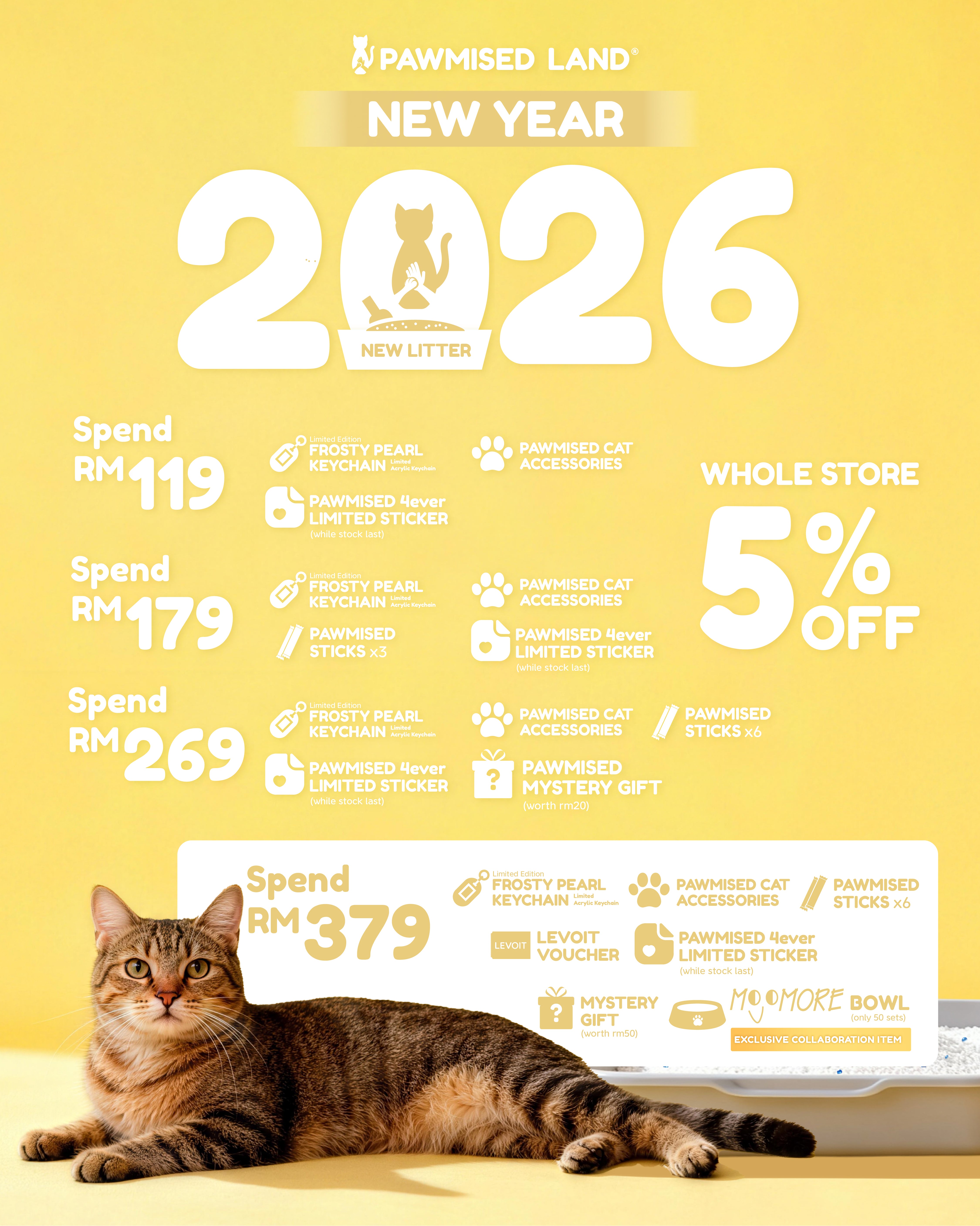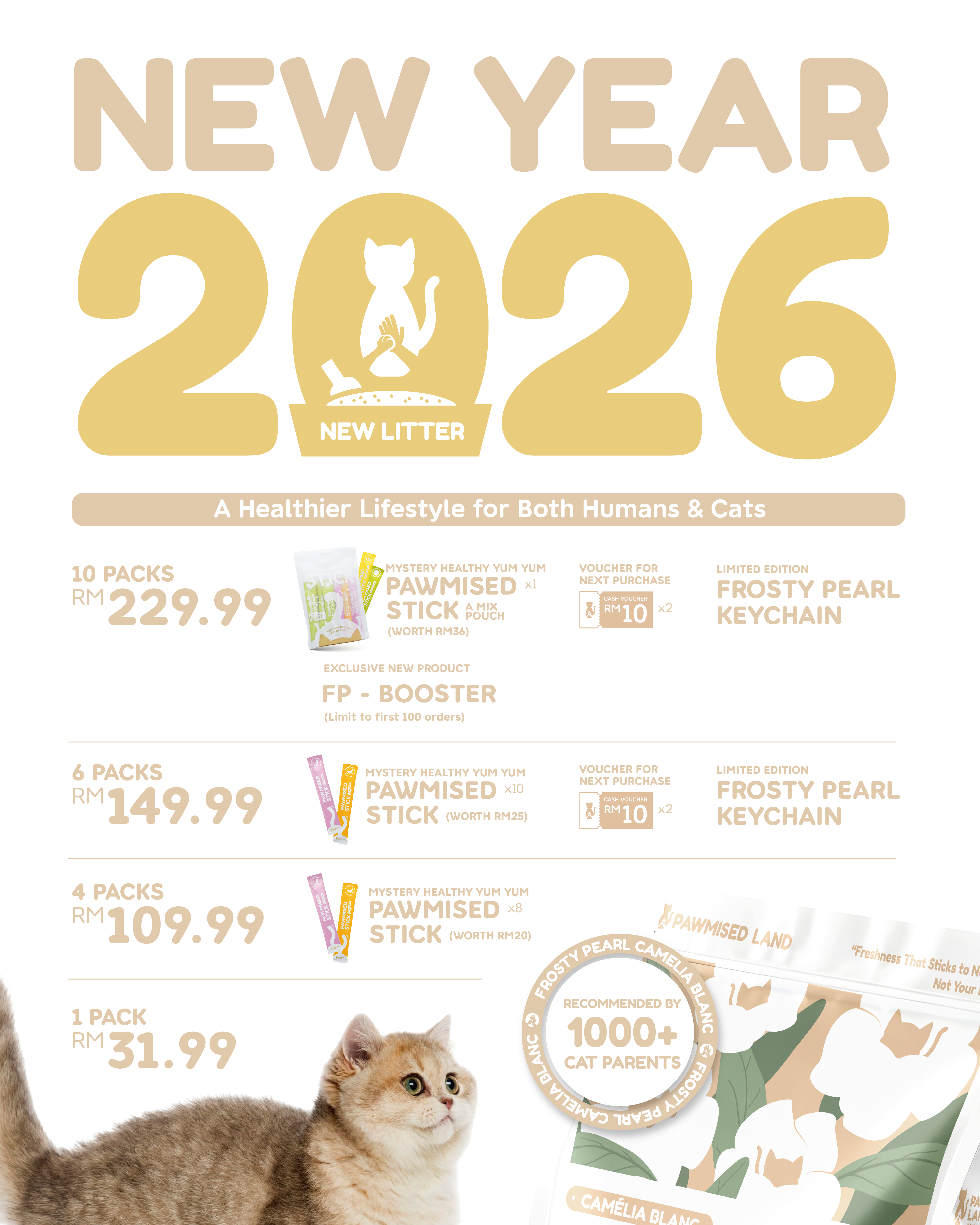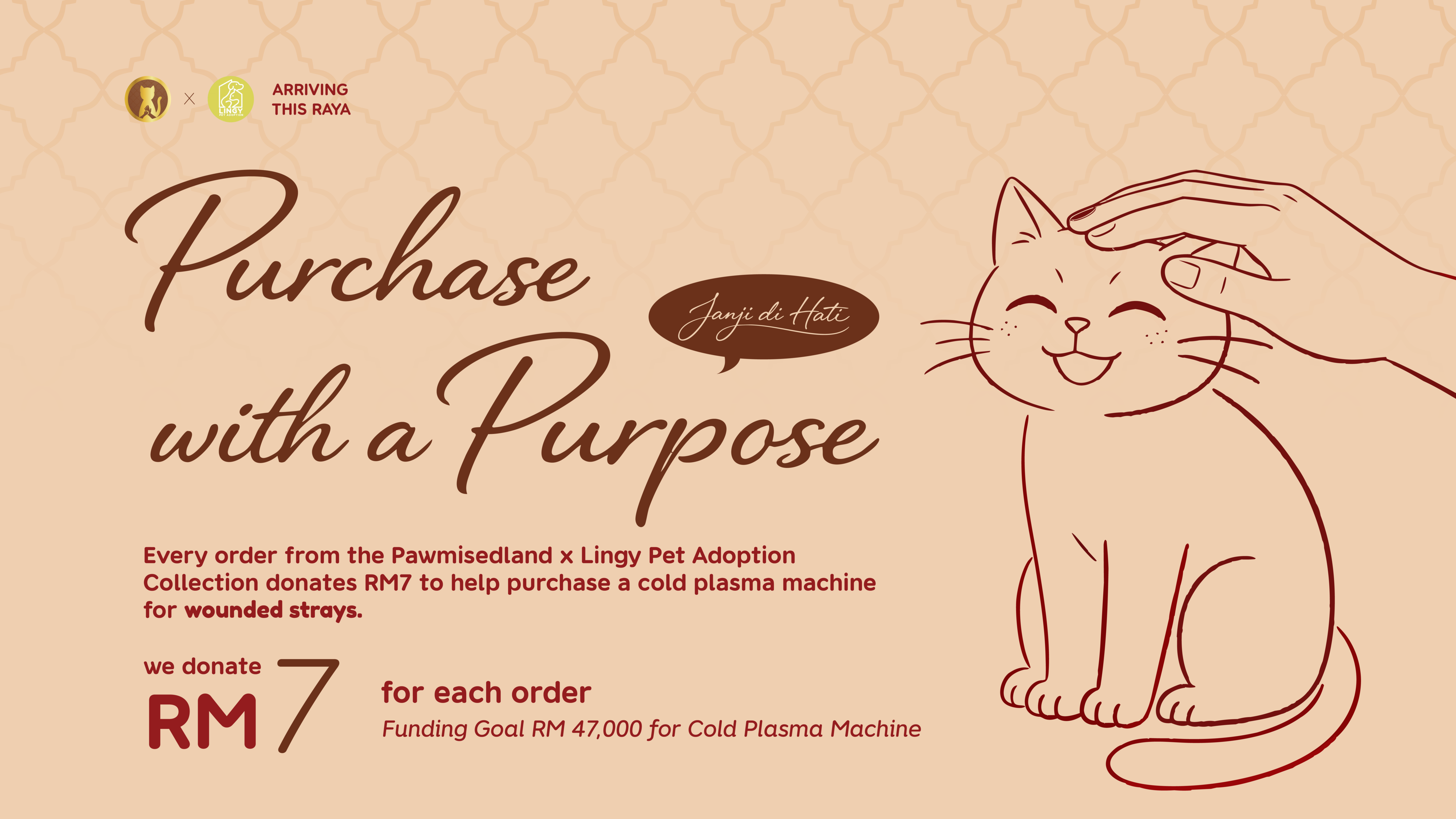 Essential litter and premium treats to welcome them home. Includes RM7 donation.