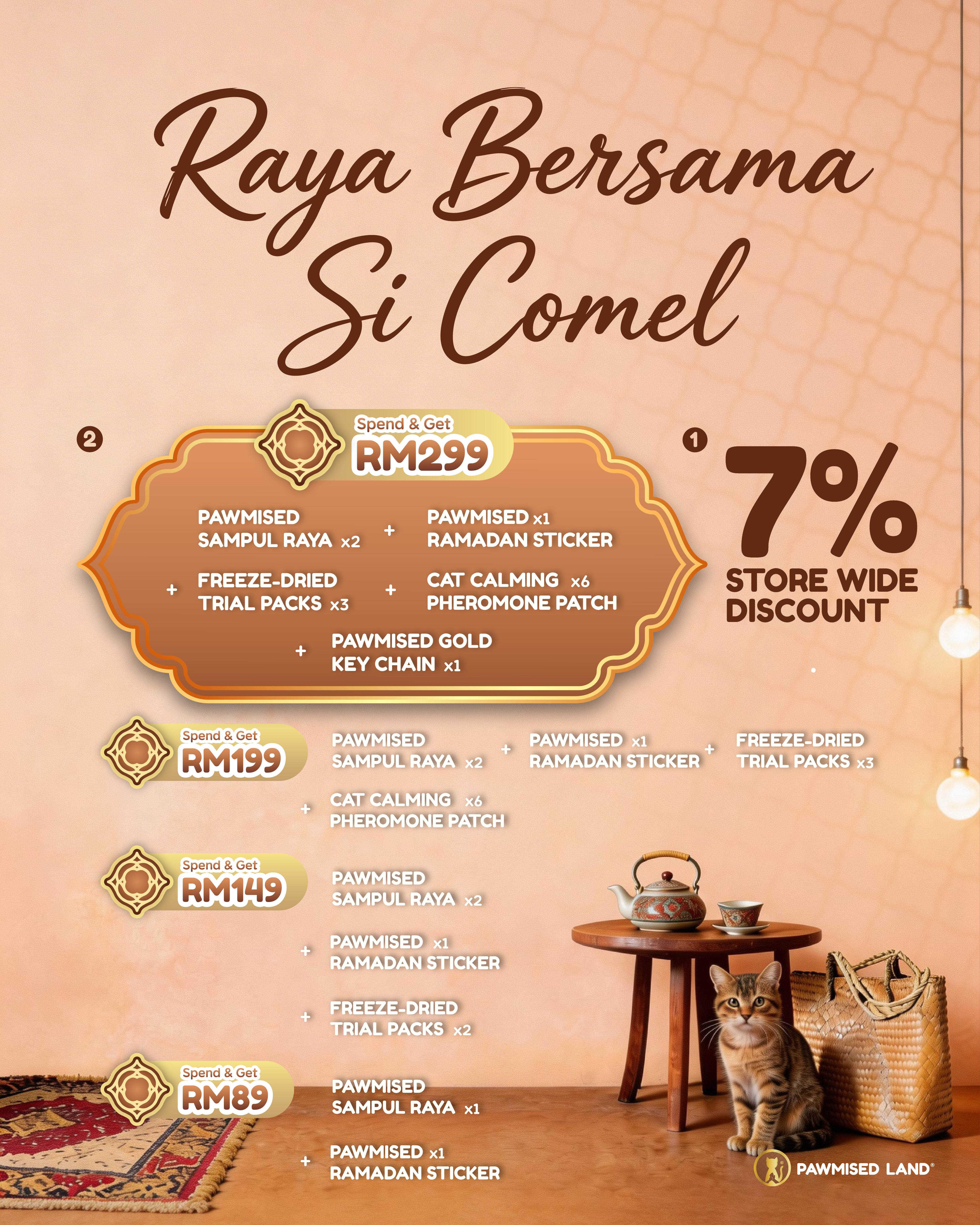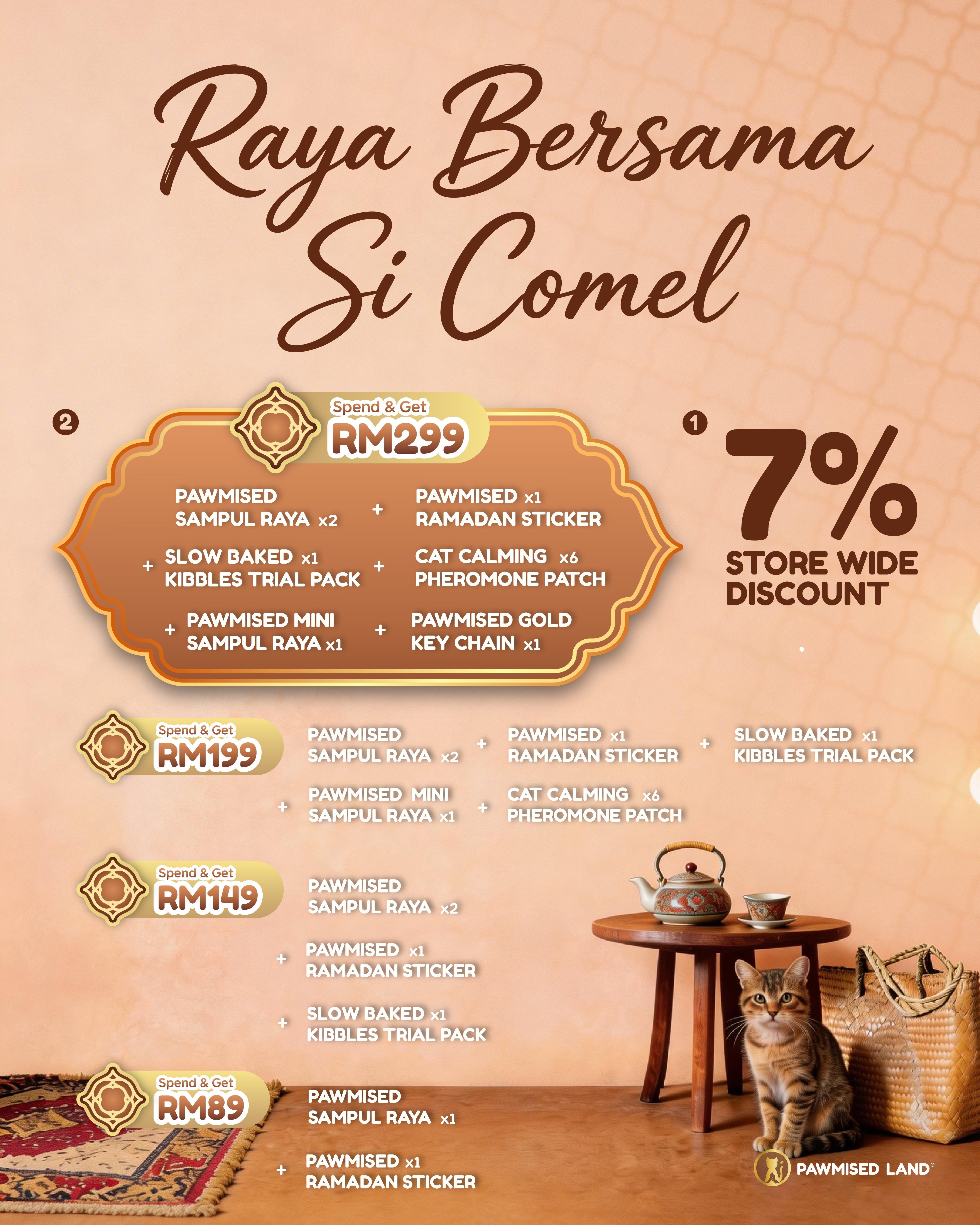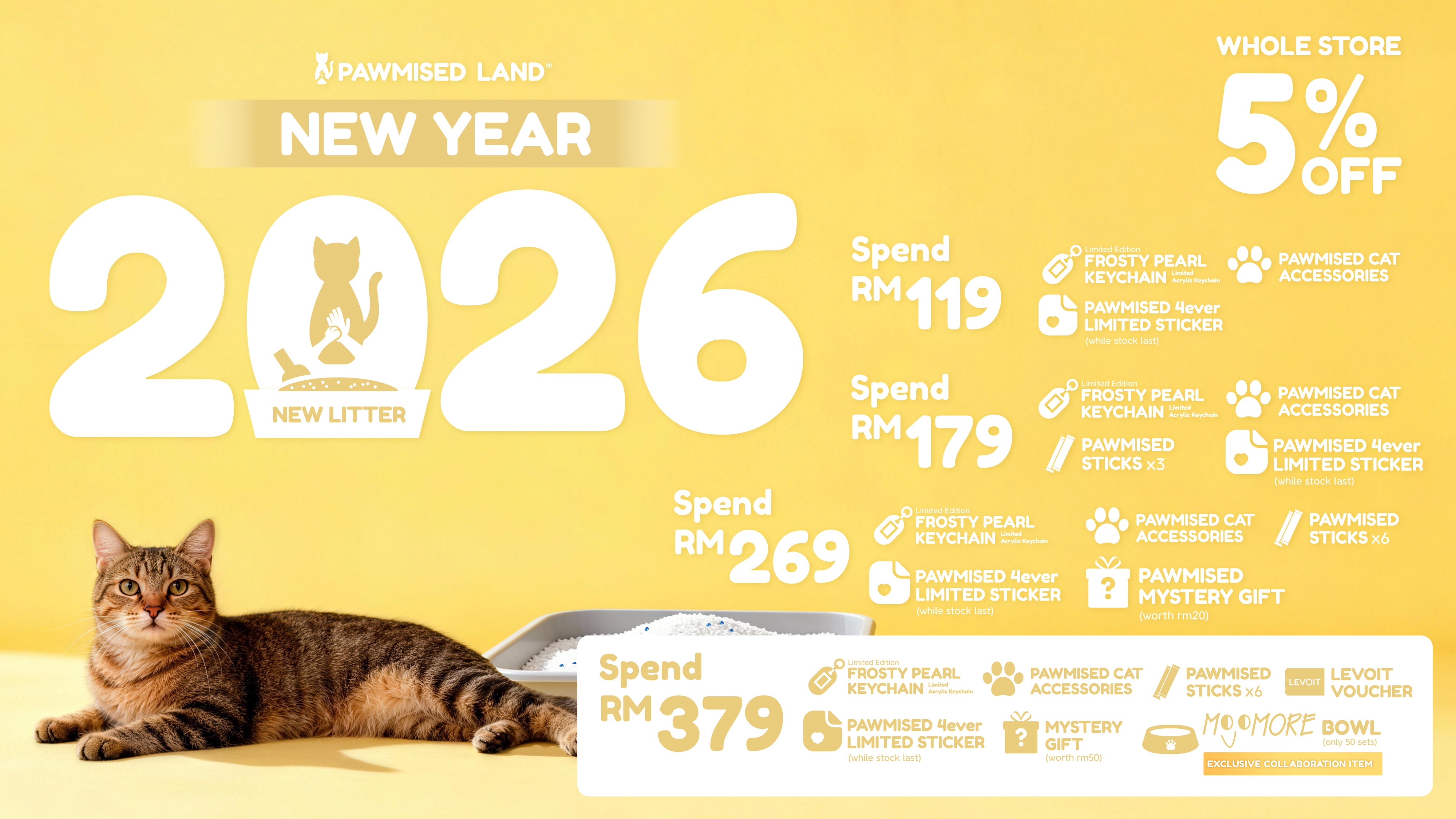 Essential litter and premium treats to welcome them home. Includes RM7 donation.