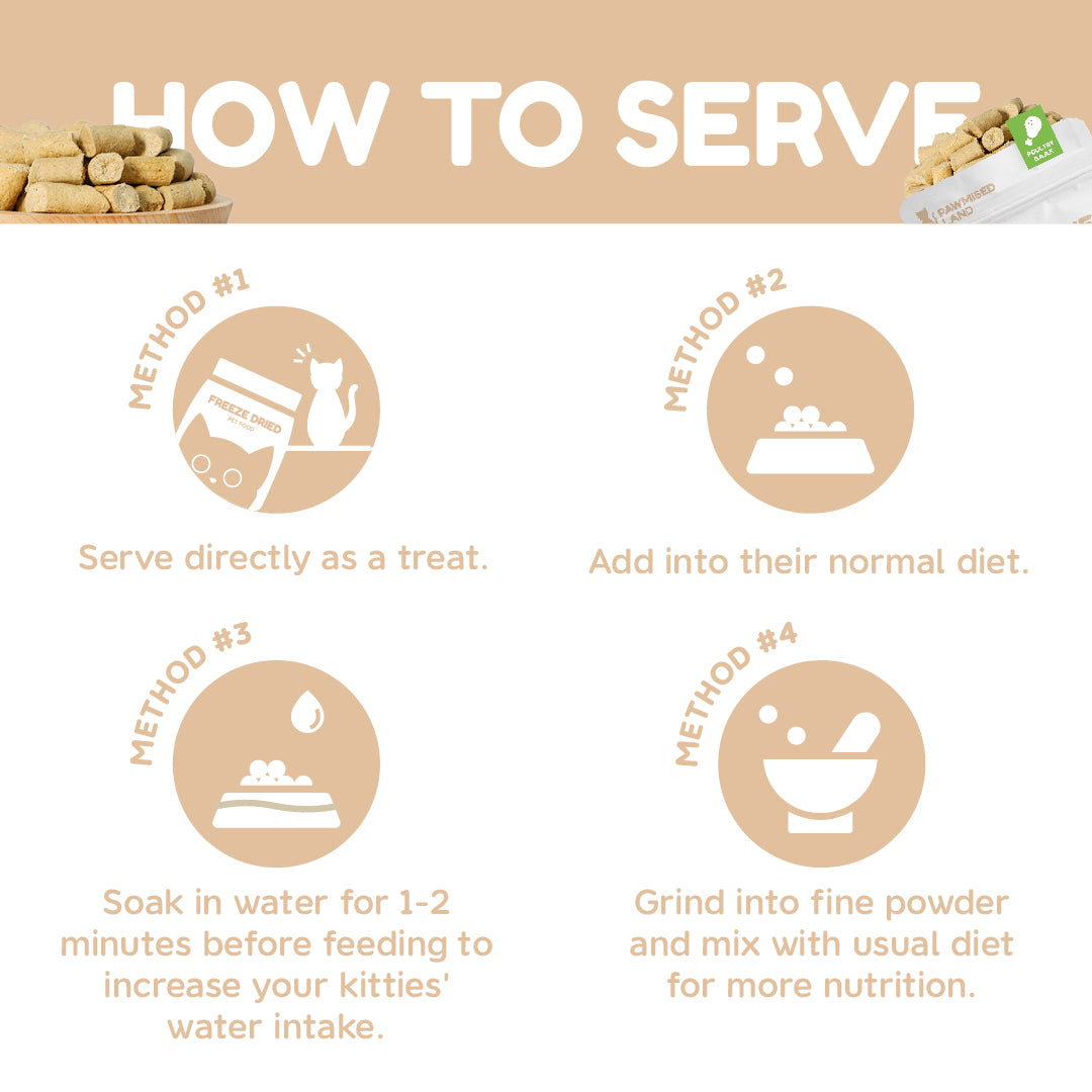 Our Catty Grub are also yummy-guaranteed, even the pickiest fur baby will enjoy the crunch, texture, satisfaction and feel the joy of eating again.