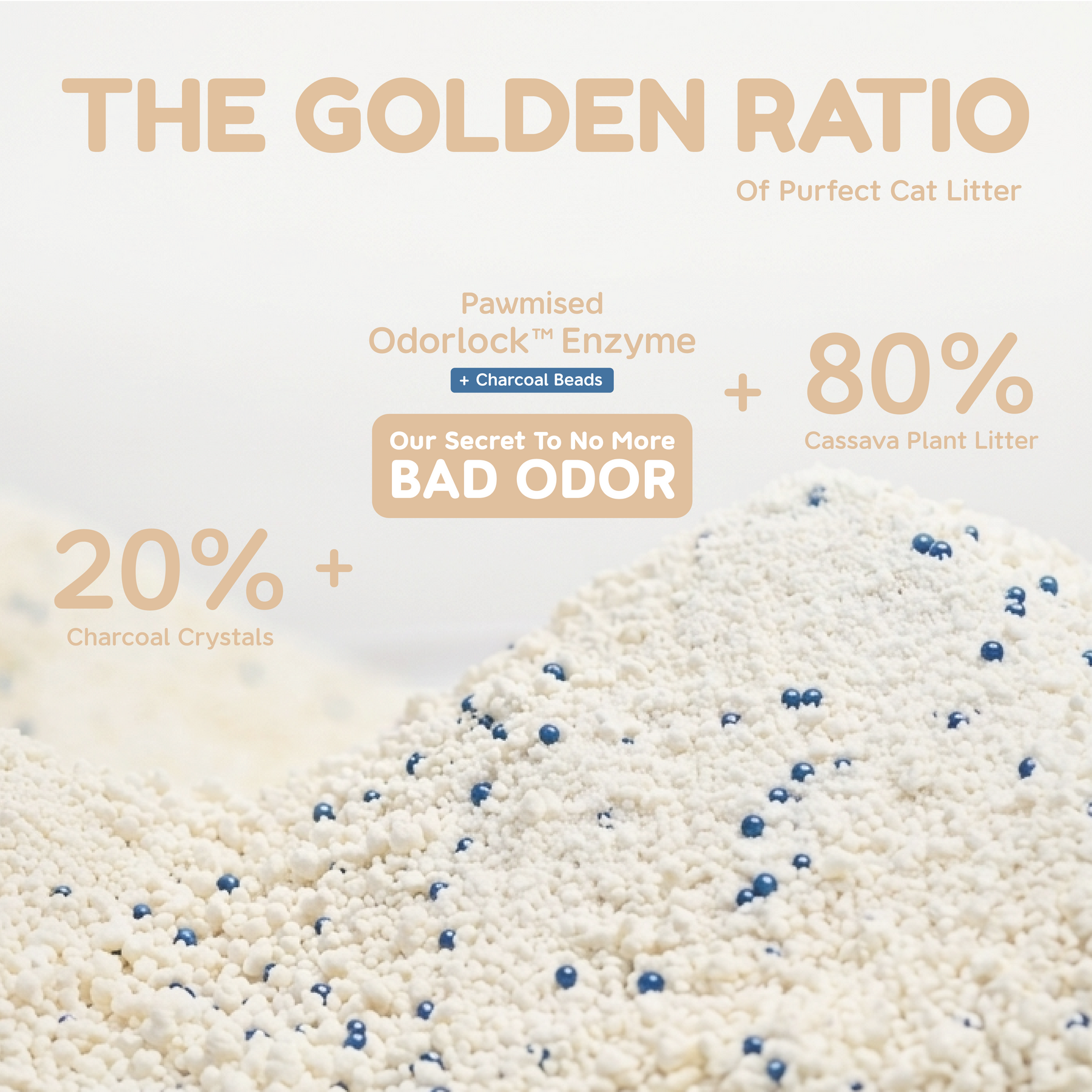 Derived from cassava, it forms strong clumps, is dust-free, and gentle on cats' paws, offering a natural, eco-friendly solution.